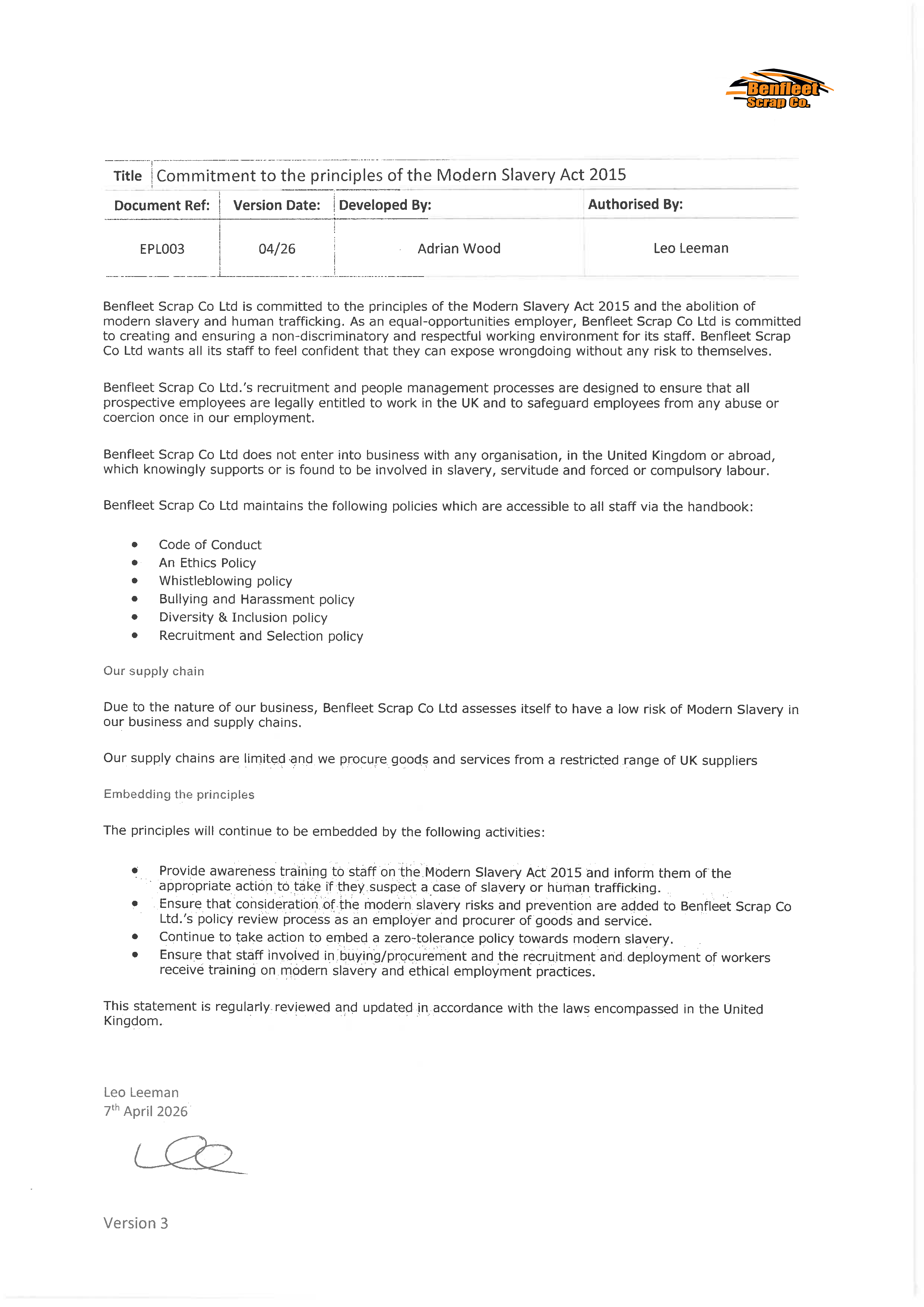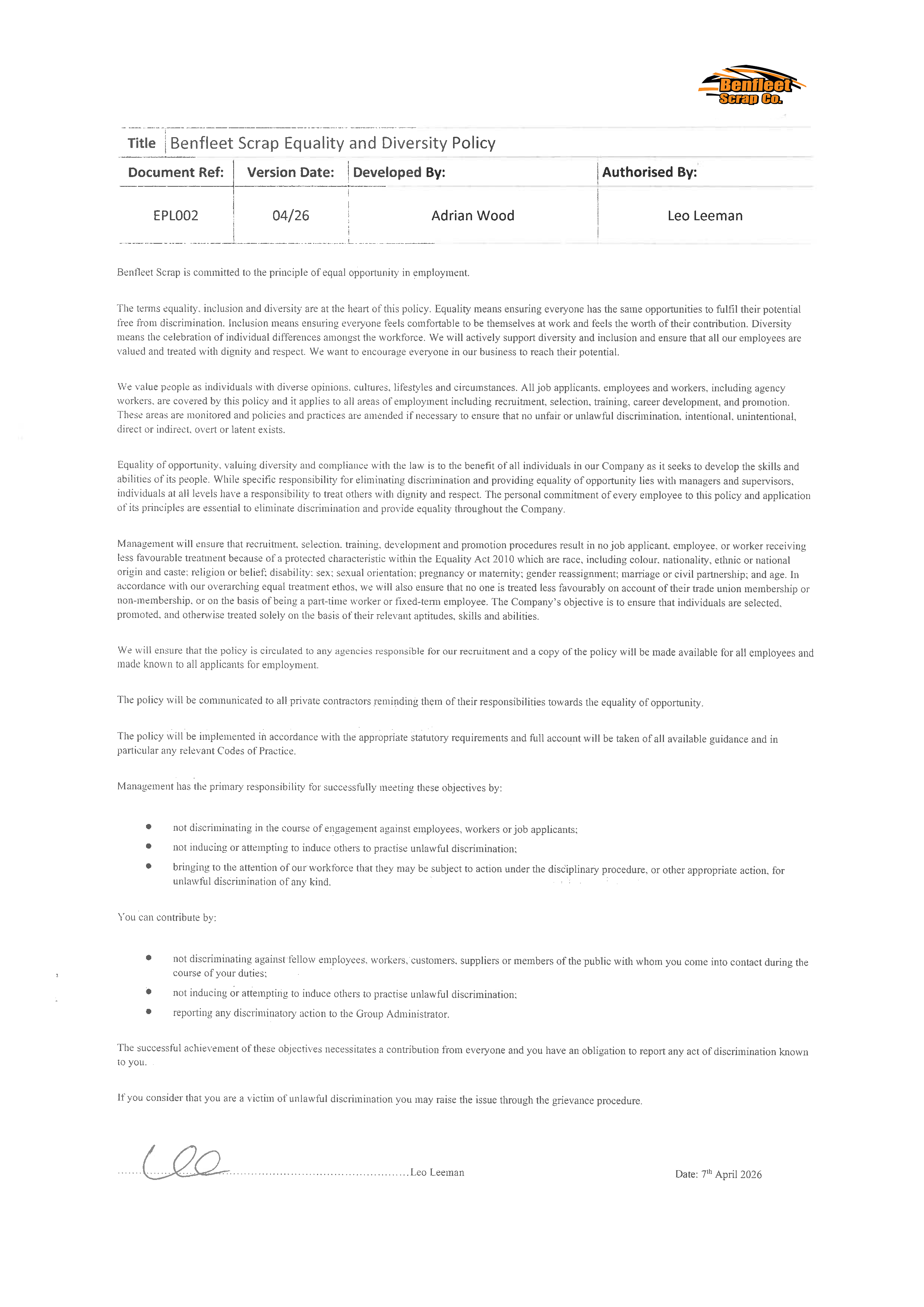 You can learn more about the Leeman family, their history and influence within the scrap and recycling industry in Essex, by reading an article published by one of our equipment suppliers, Atlas, learn more abut the Leeman family by clicking here.
